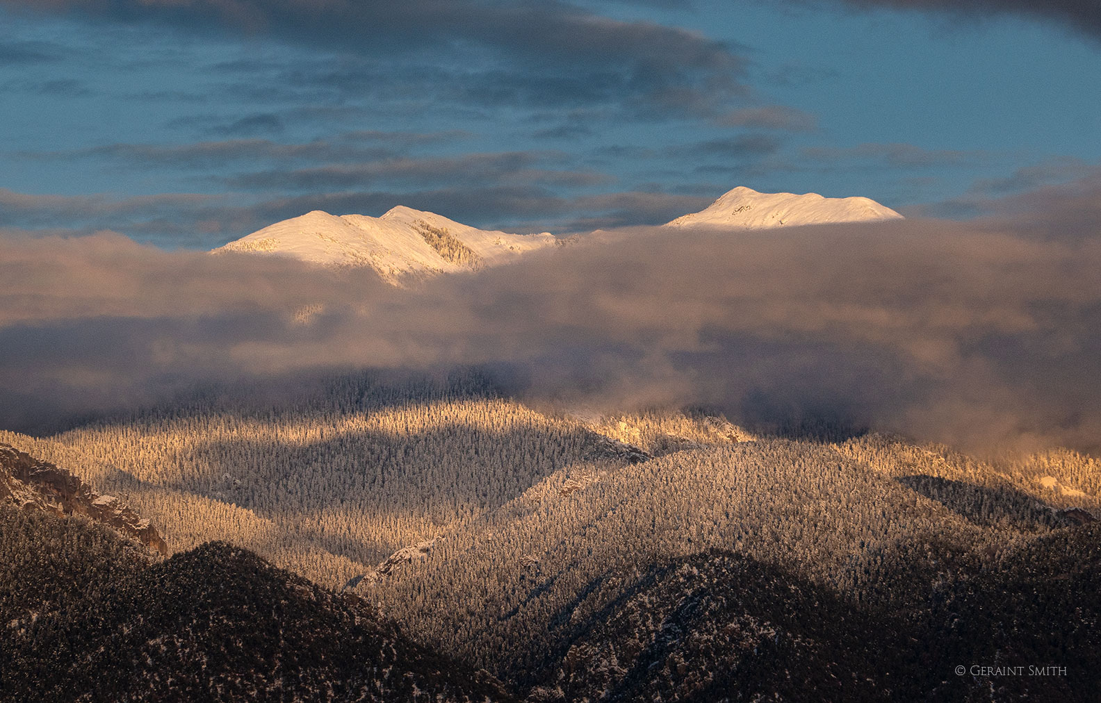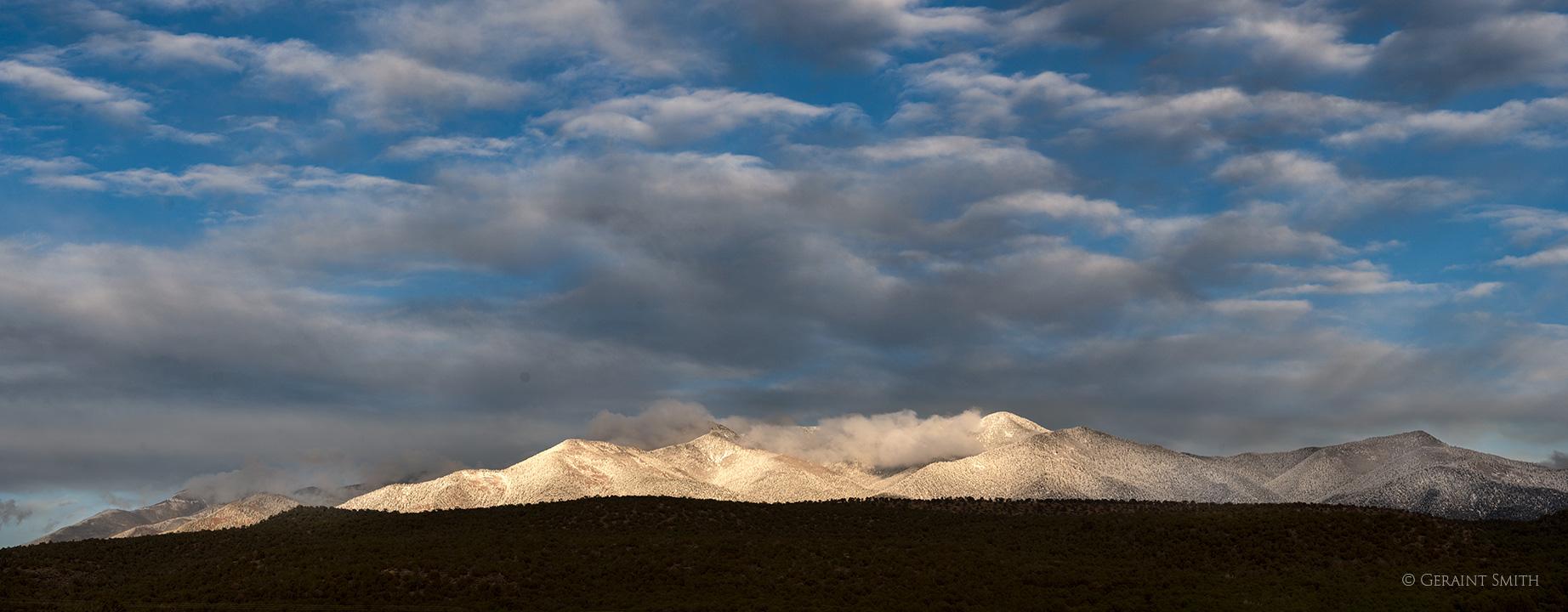 Greetings from San Cristobal, NM. This week, mountain light and snow on the peaks.