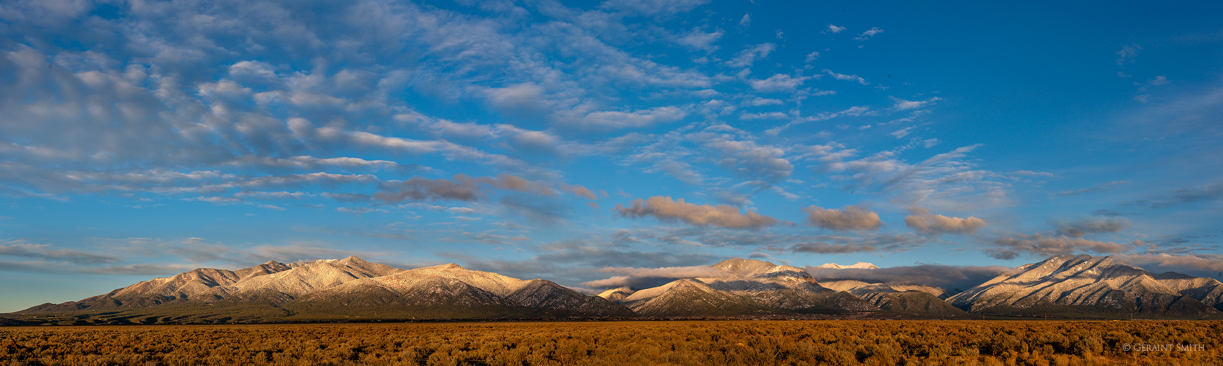 It didn’t take much to draw me outside this last weekend. Below are a few images from our neighborhood, taken just a few miles from our home. The peaks of the Columbine Hondo Wilderness glowed beautifully in the waning light. Click on an image to view the full panoramic version.