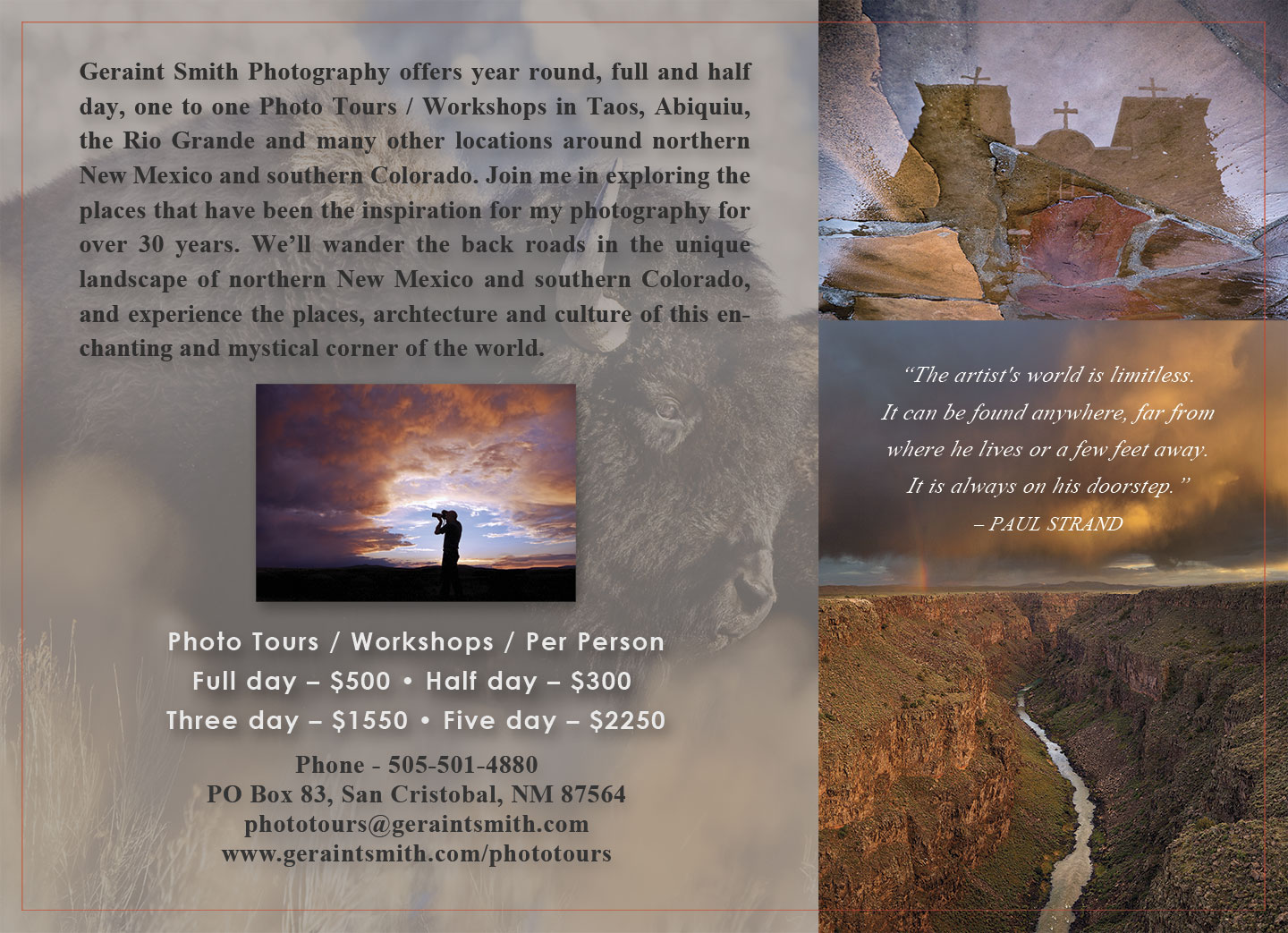 Here’s my new postcard promo piece for Photo Tour/Workshops. Gift certificates are available.