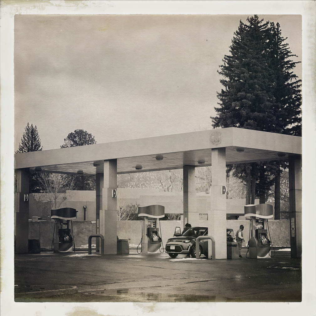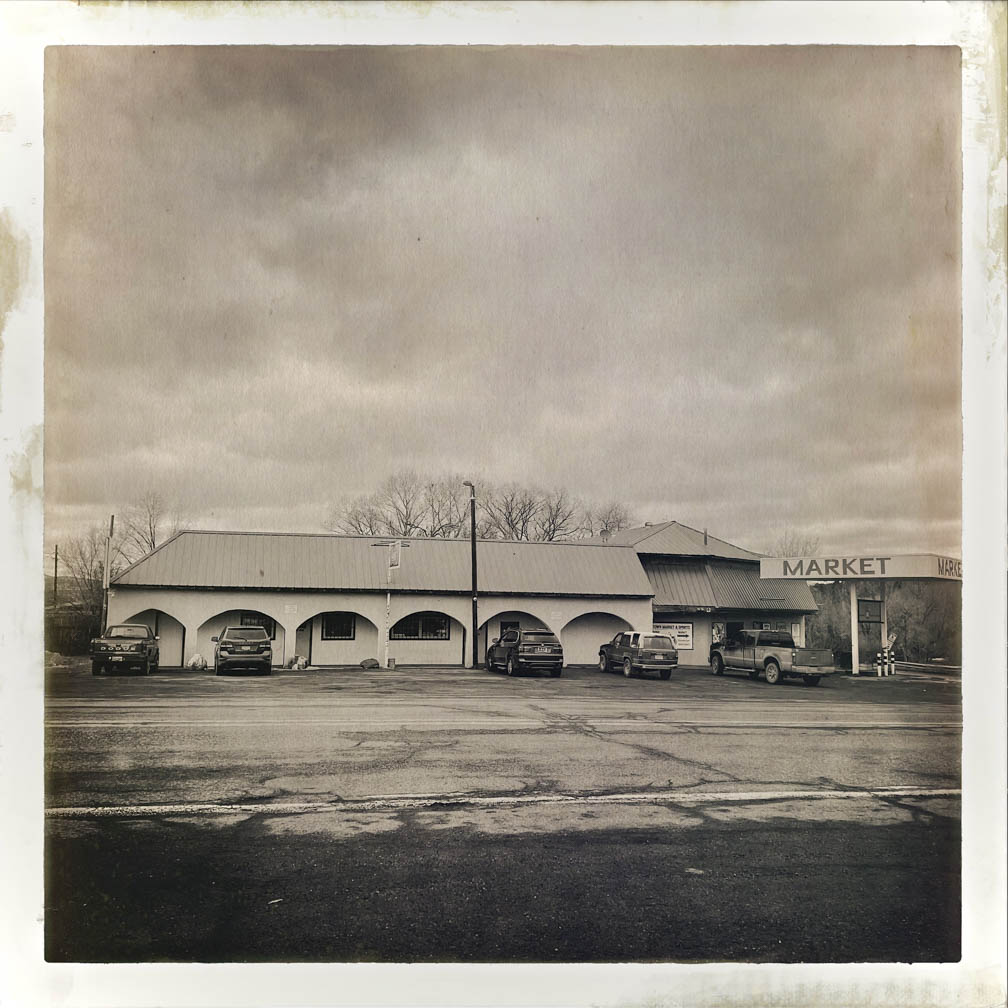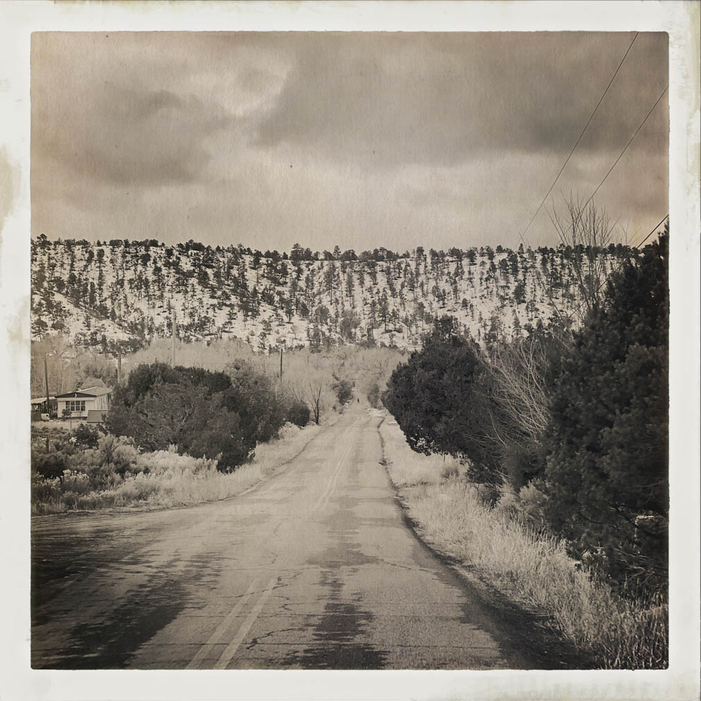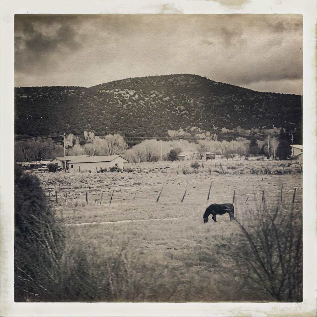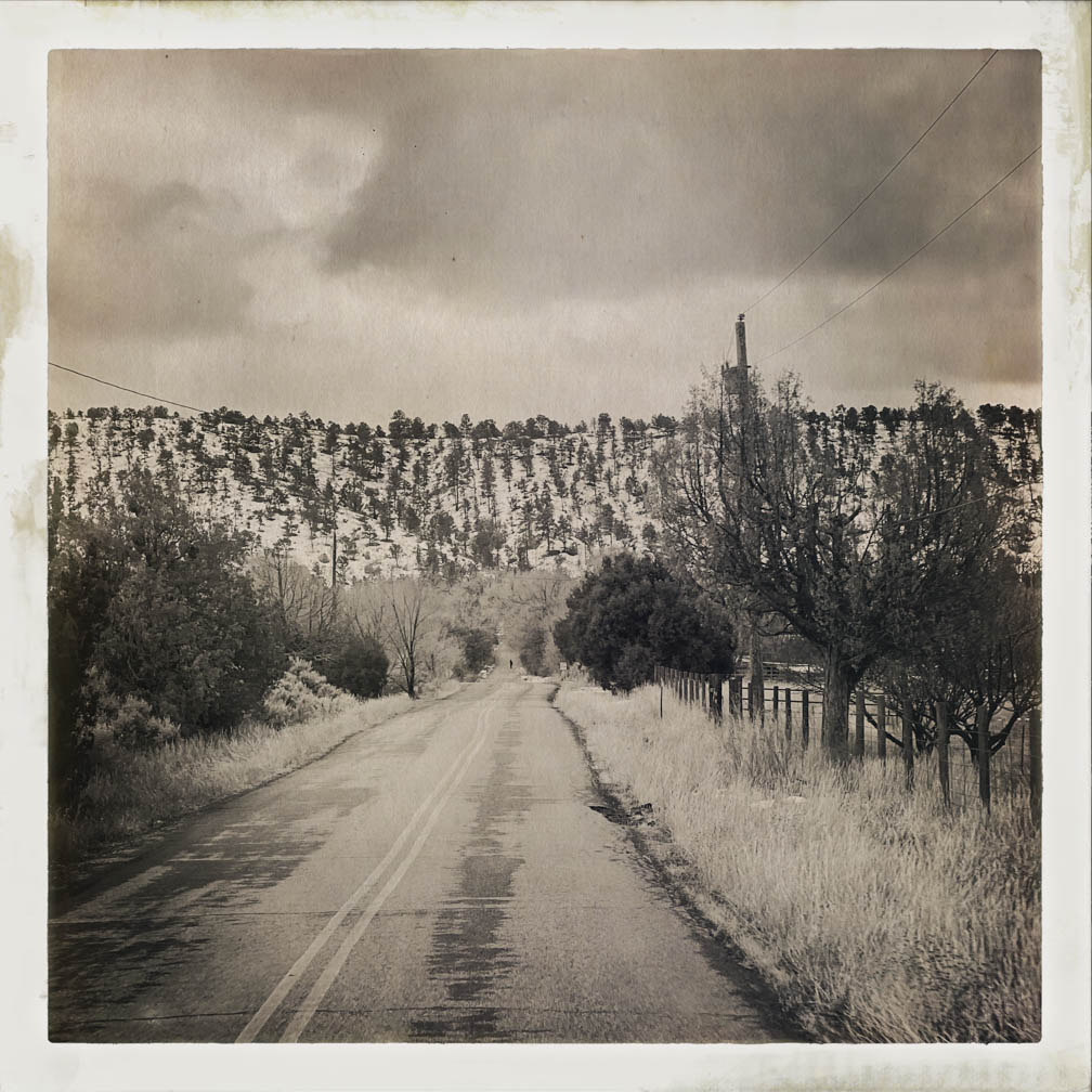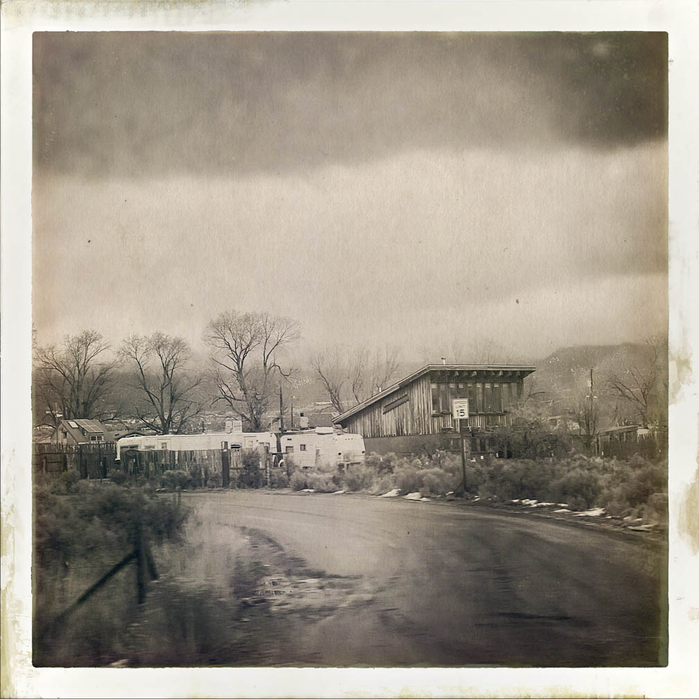 Hello from San Cristobal, NM! I hope everyone had a good week. This week, I captured some images on a rainy and overcast day in January 2024 from my car. I wasn’t driving, so I took the opportunity to shoot photos out the window using the Hipstamatic camera app on my iPhone. I know it’s been in existence for quite some time, but I’d never tried it out. Some of my clients use it frequently, and some use the app primarily for their image-making. These pictures are unedited and straight from the camera, using settings I selected just for fun.