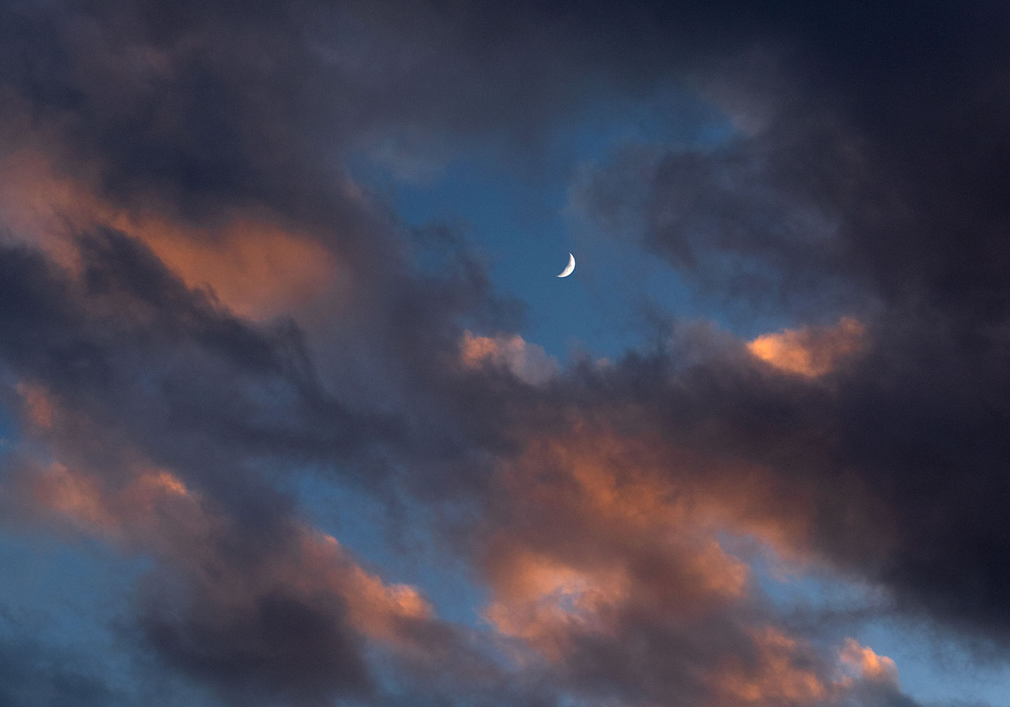Crescent Moon, through an opening in the clouds.