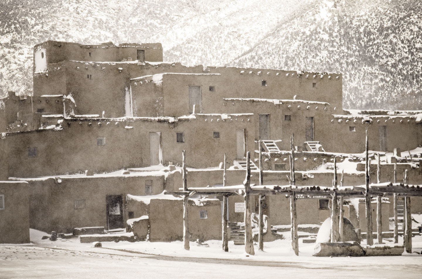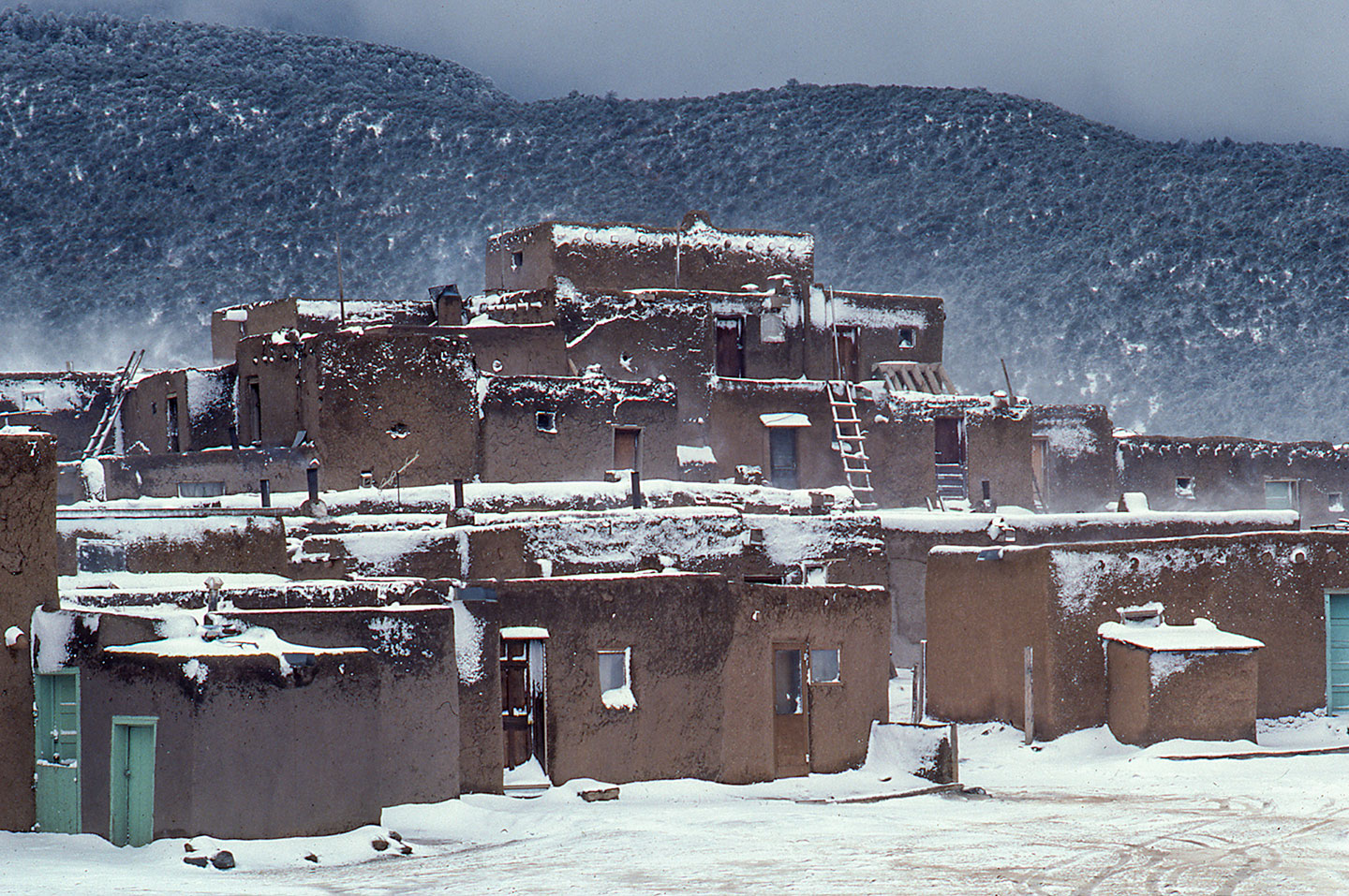Taos Pueblo snowfall, thanksgiving, 1984.